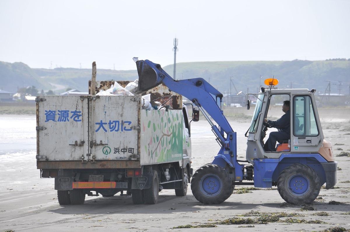 | 浜中町からゴミ収集車を出していただきました | 海岸清掃の皆さん | |