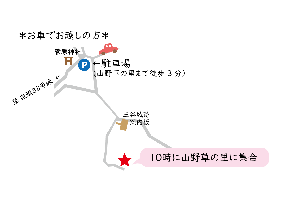 9:50 山野草の里無料駐車場(菅原神社前)集合、徒歩にて移動